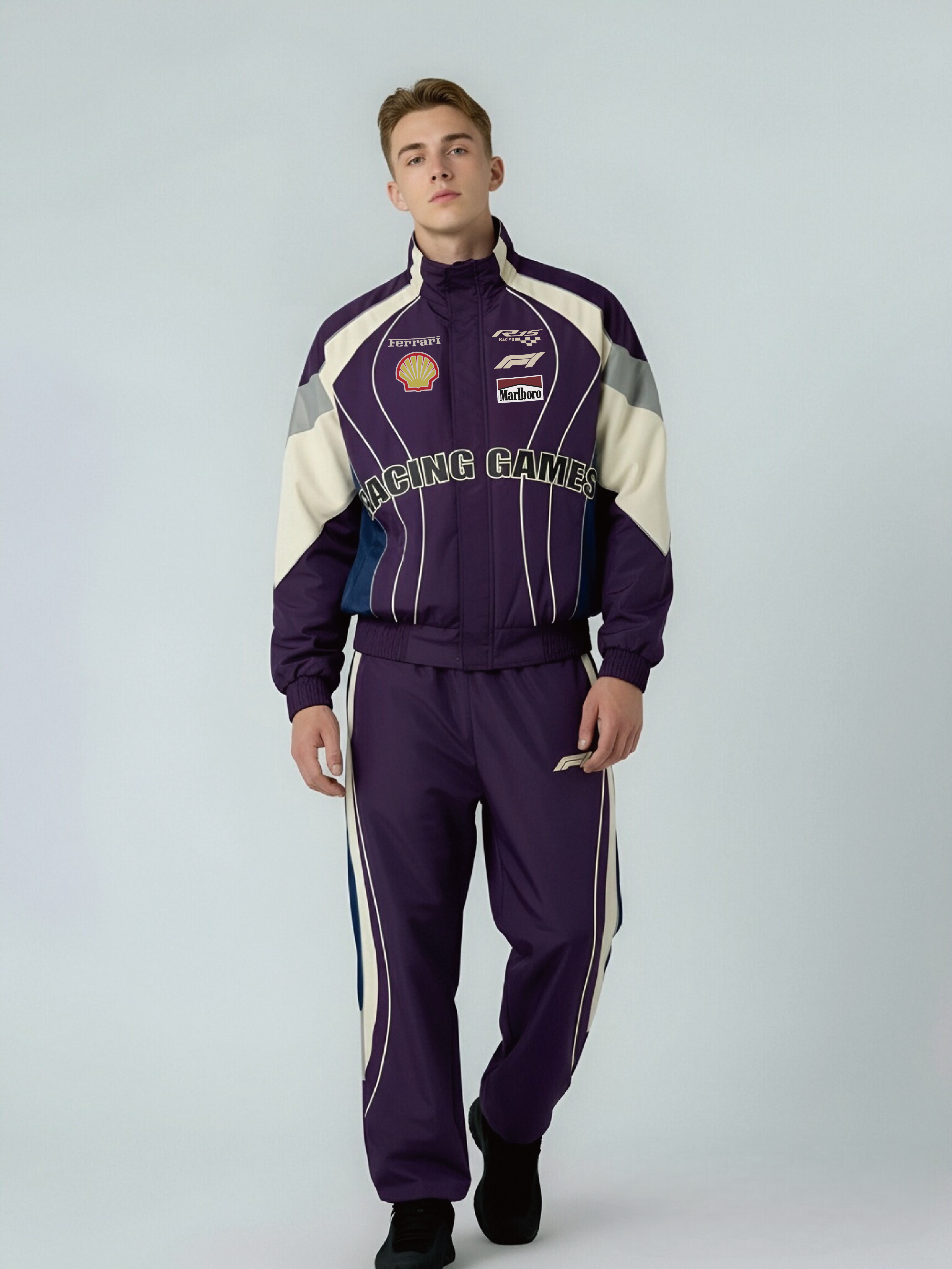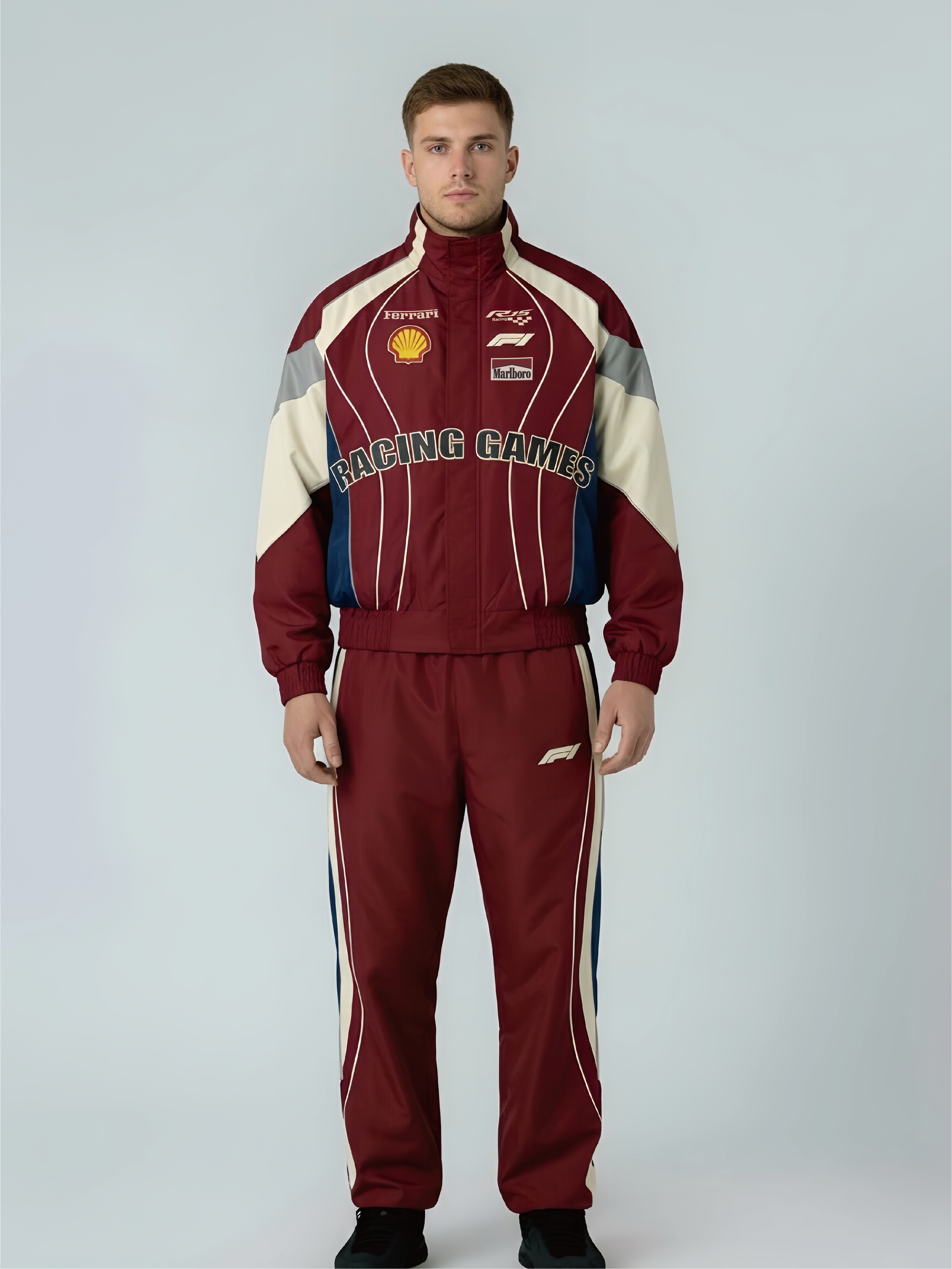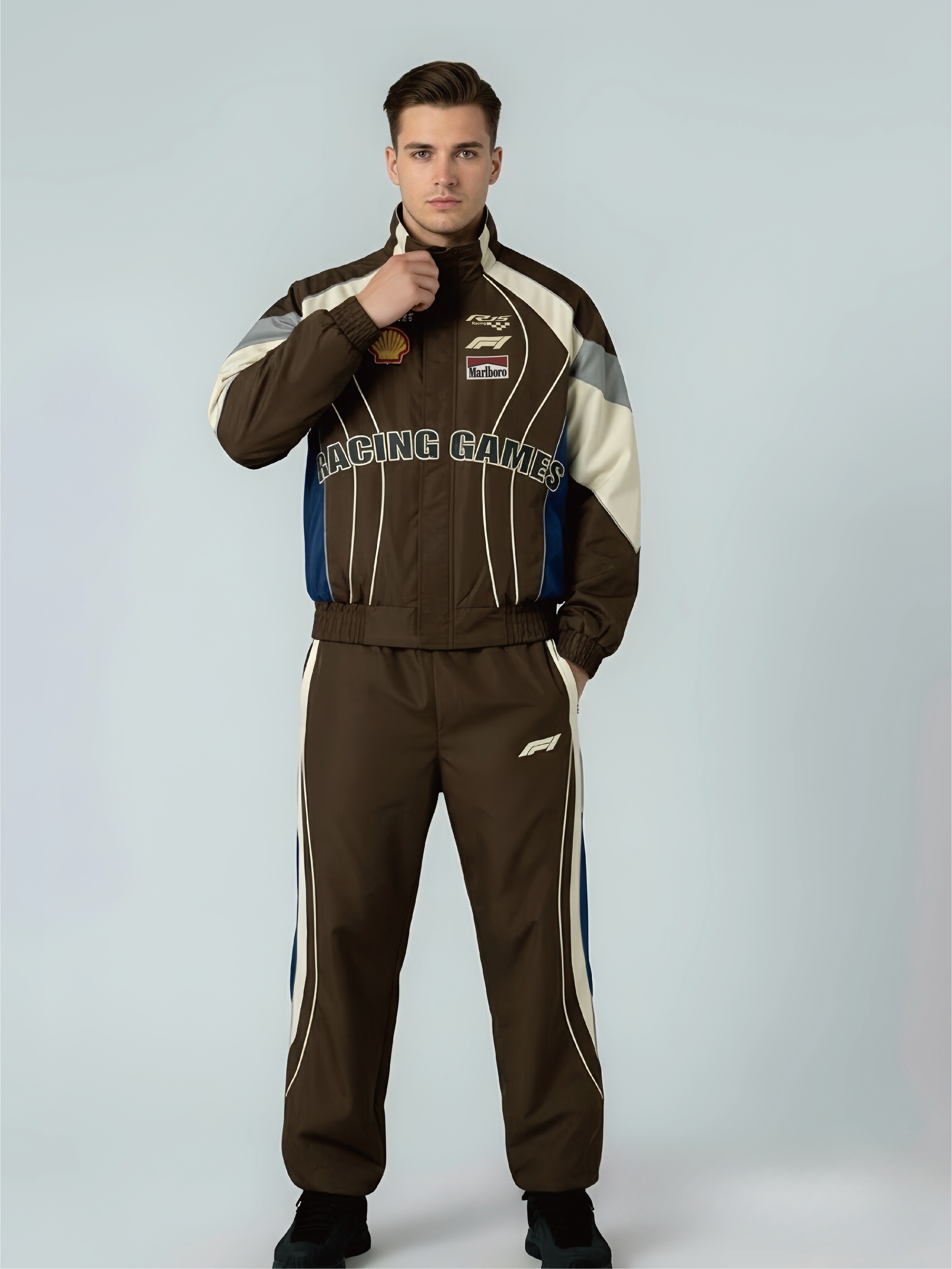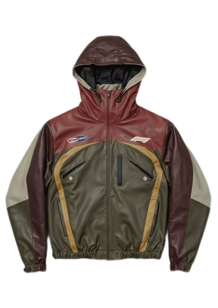 Racing-Inspired Multi-Tone Color-Block Hooded Jacket – Richard Rock & F1 Branded Details