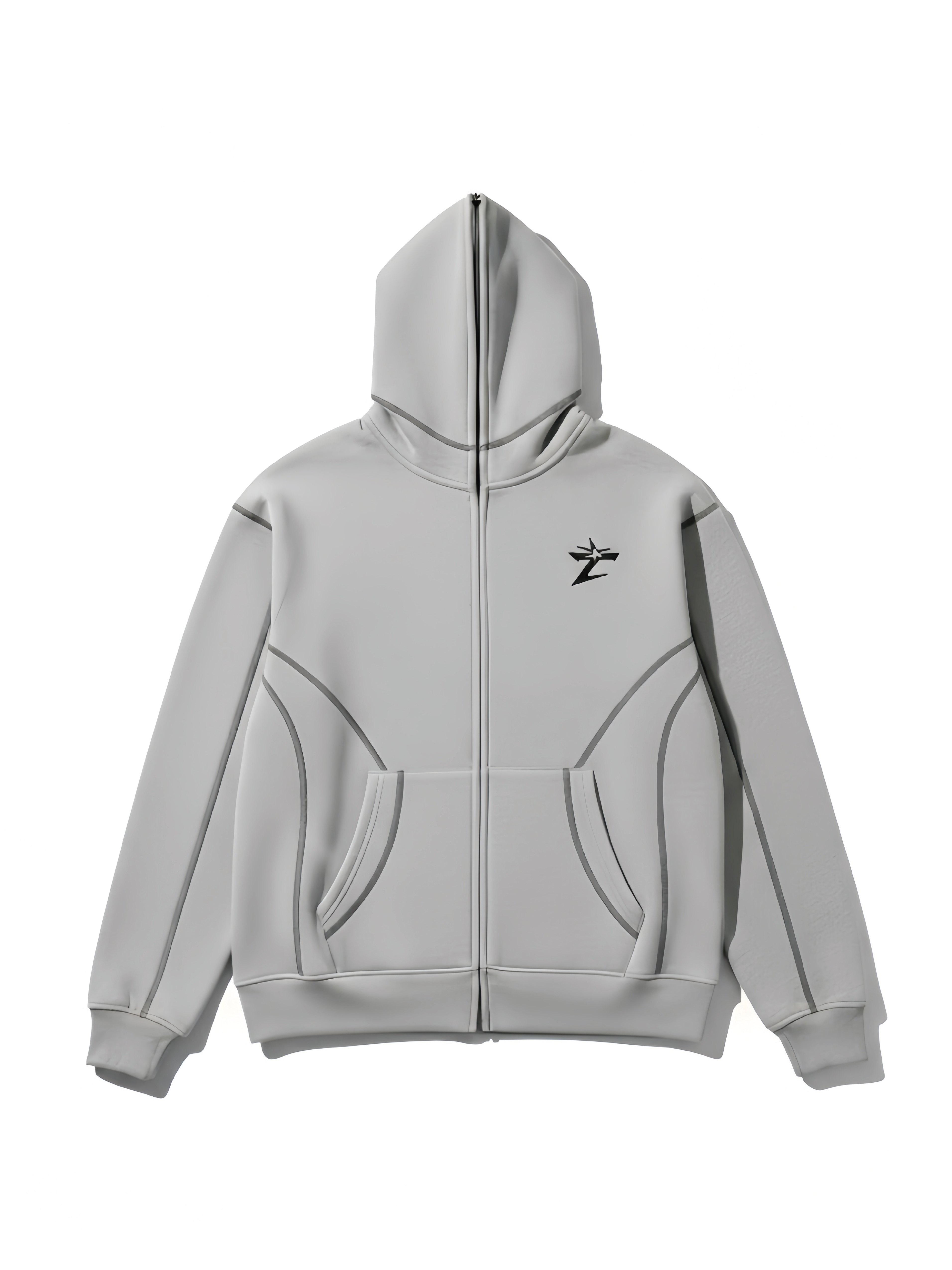 Tonal Contour-Stitch Z-Emblem Full-Zip Hoodie