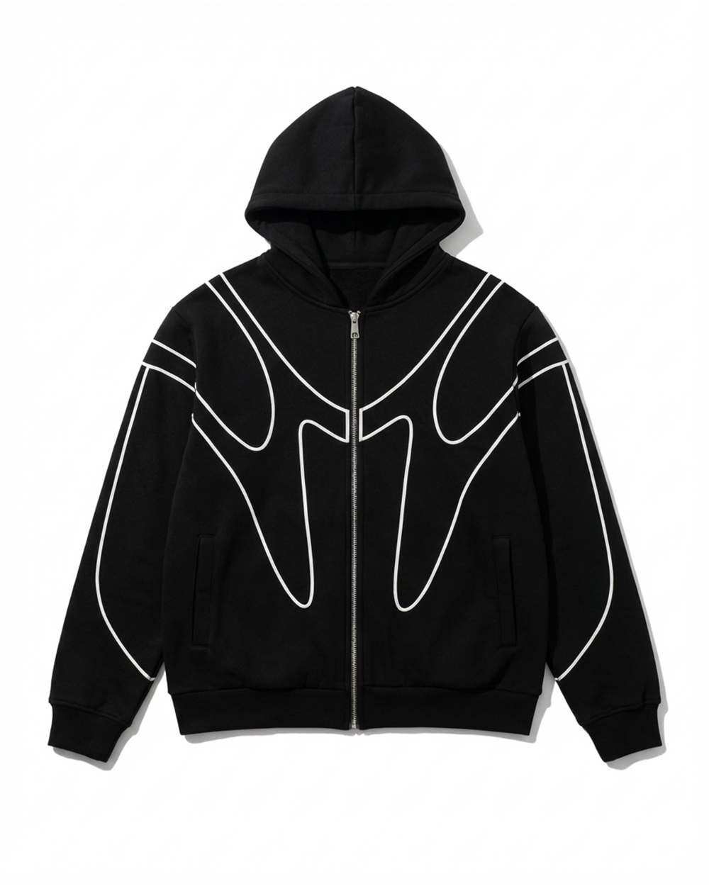 Black & Gray Contrast Flame-Stitch Dual-Hood Full-Zip Oversized Hoodie