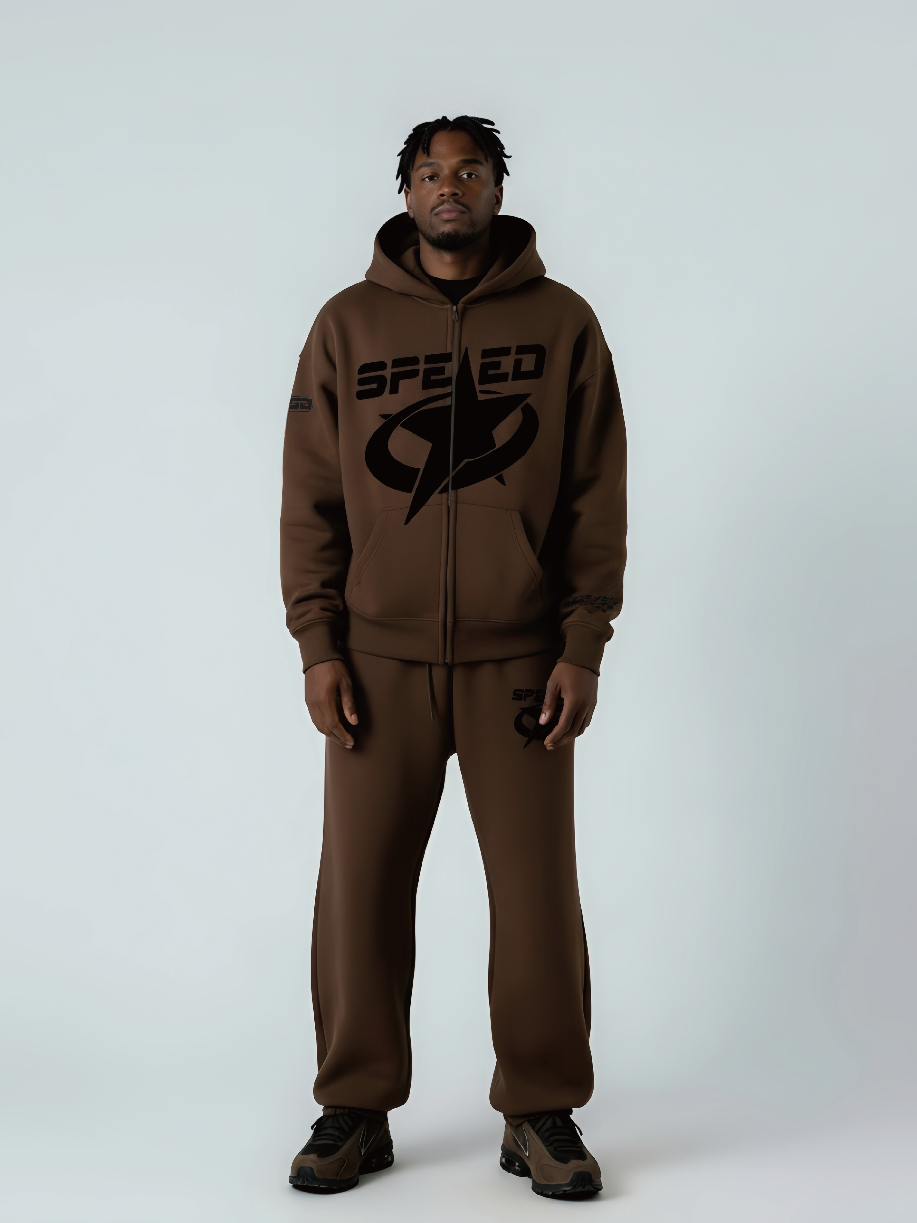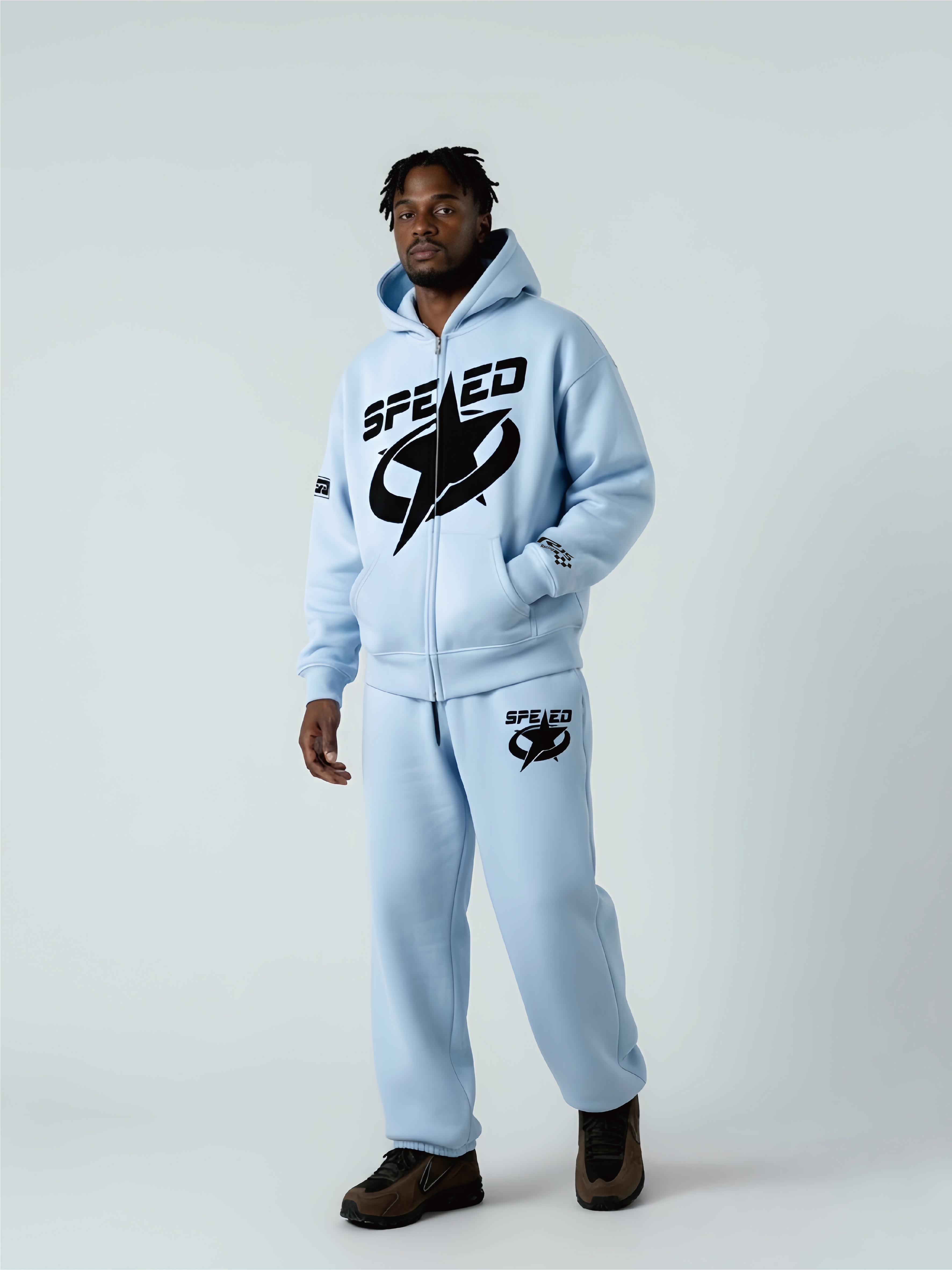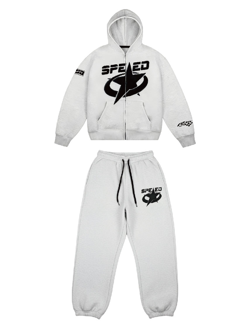 Stylish and casual two-piece set, 2026 model star print tracksuit, featuring a loose-fitting hooded sweatshirt and wide-leg sweatpants with pockets