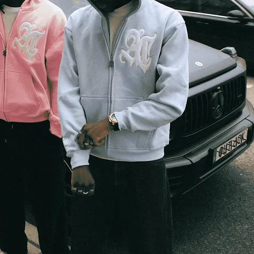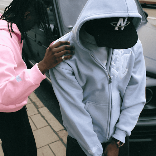 Our Amici "Colori Zip" is now available in sky blue. Featuring a high quality zip hoodie with a puffy chenille embroidery on the chest, embroidery on the wrist and customized zipper.