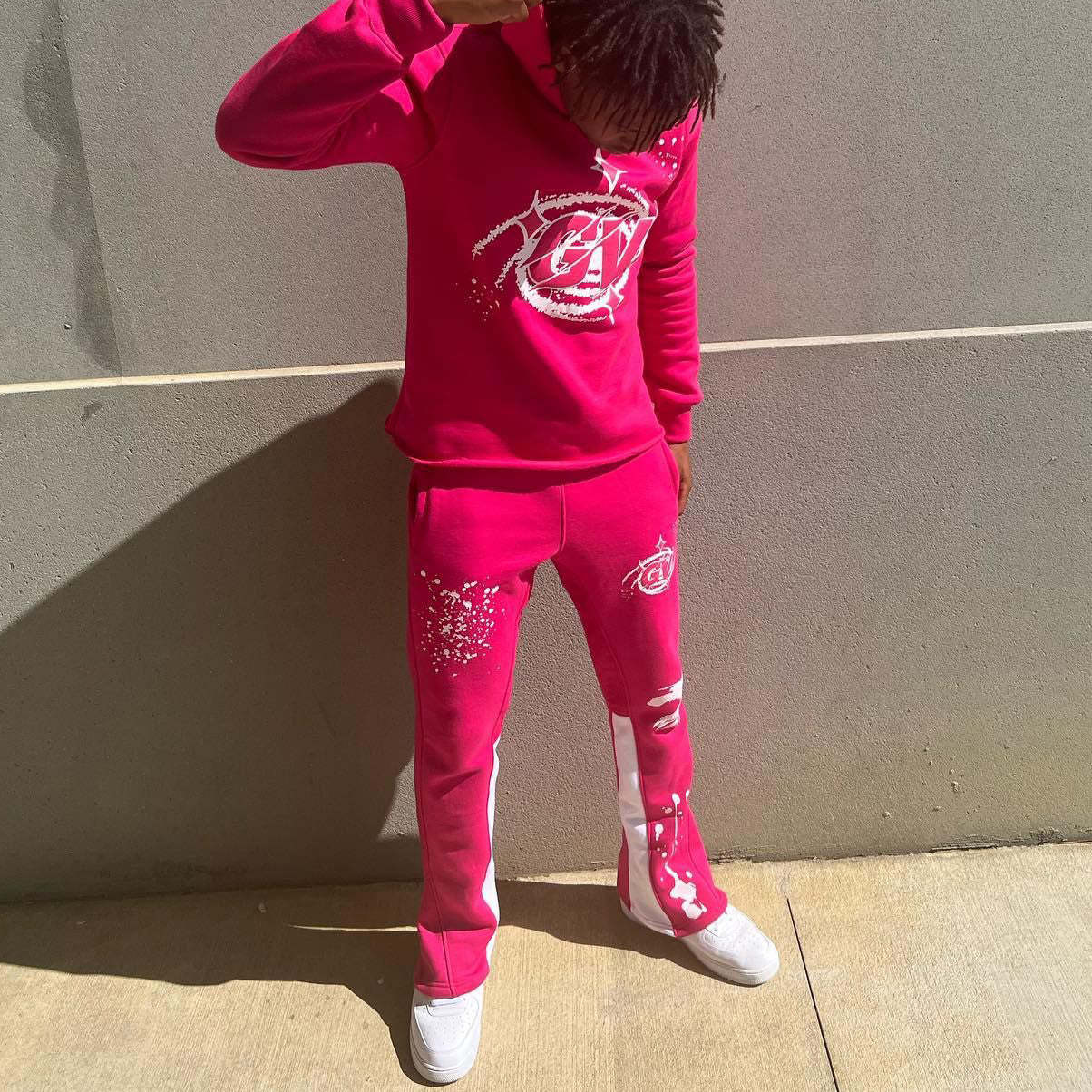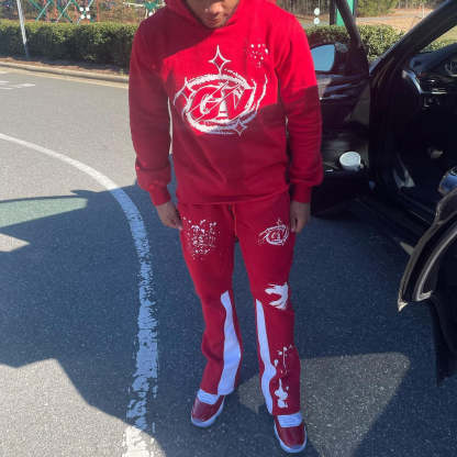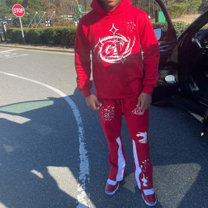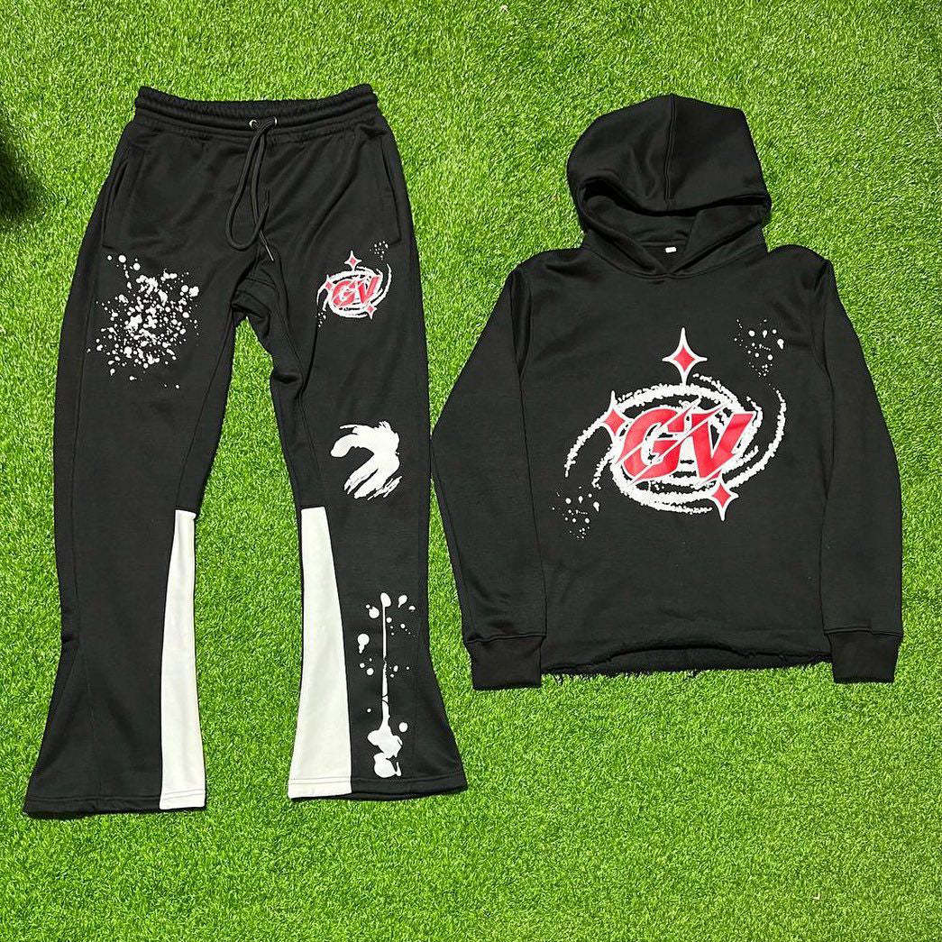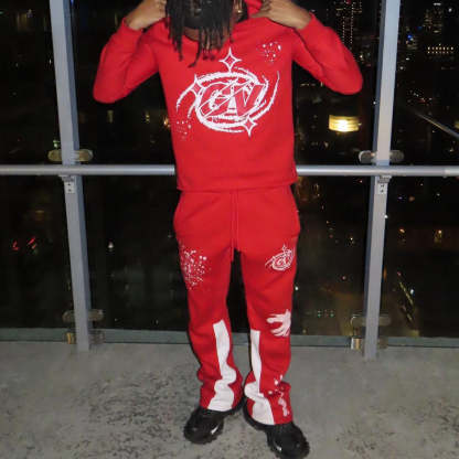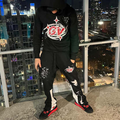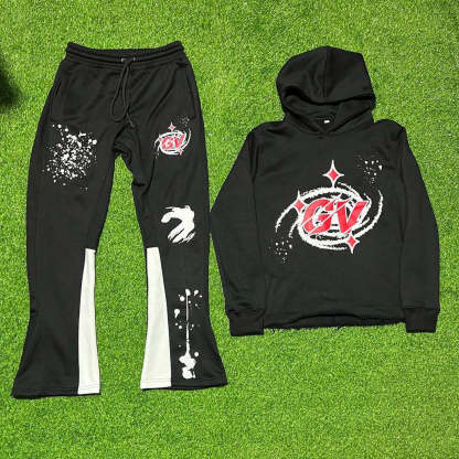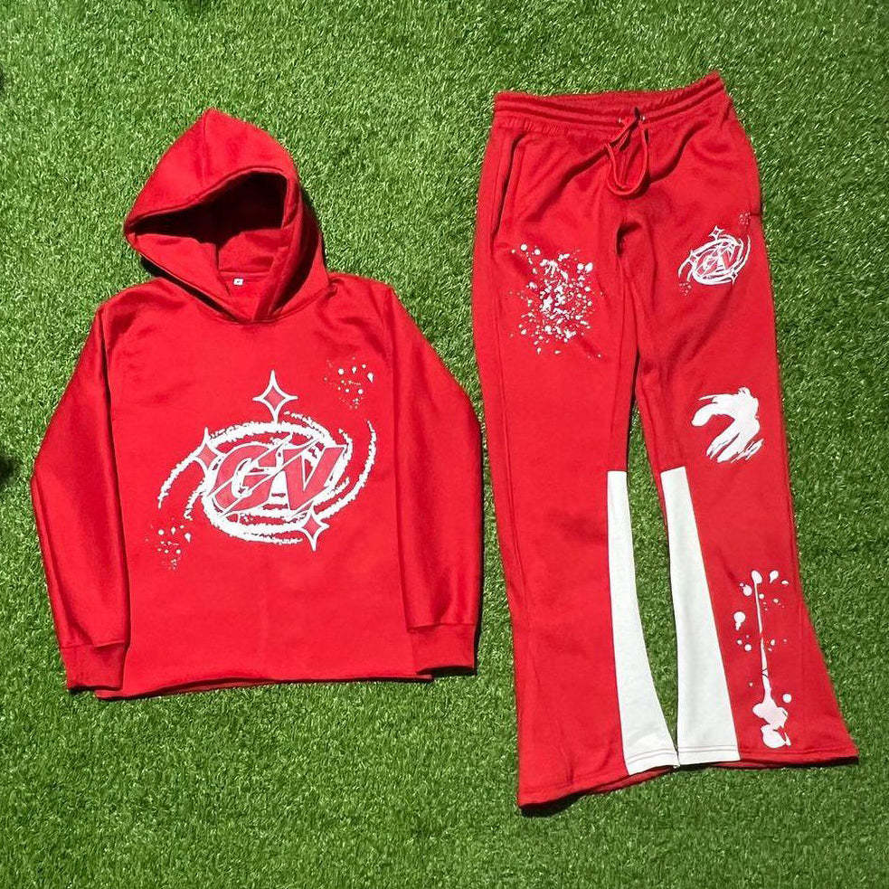 Casual Print Hoodie Sweatpants Two Piece Set