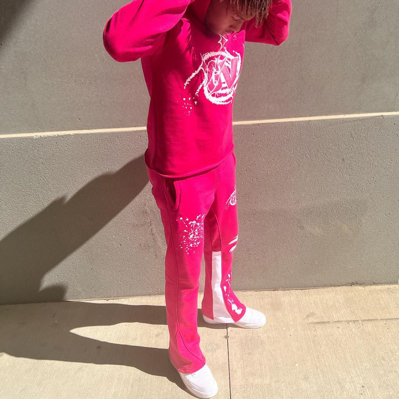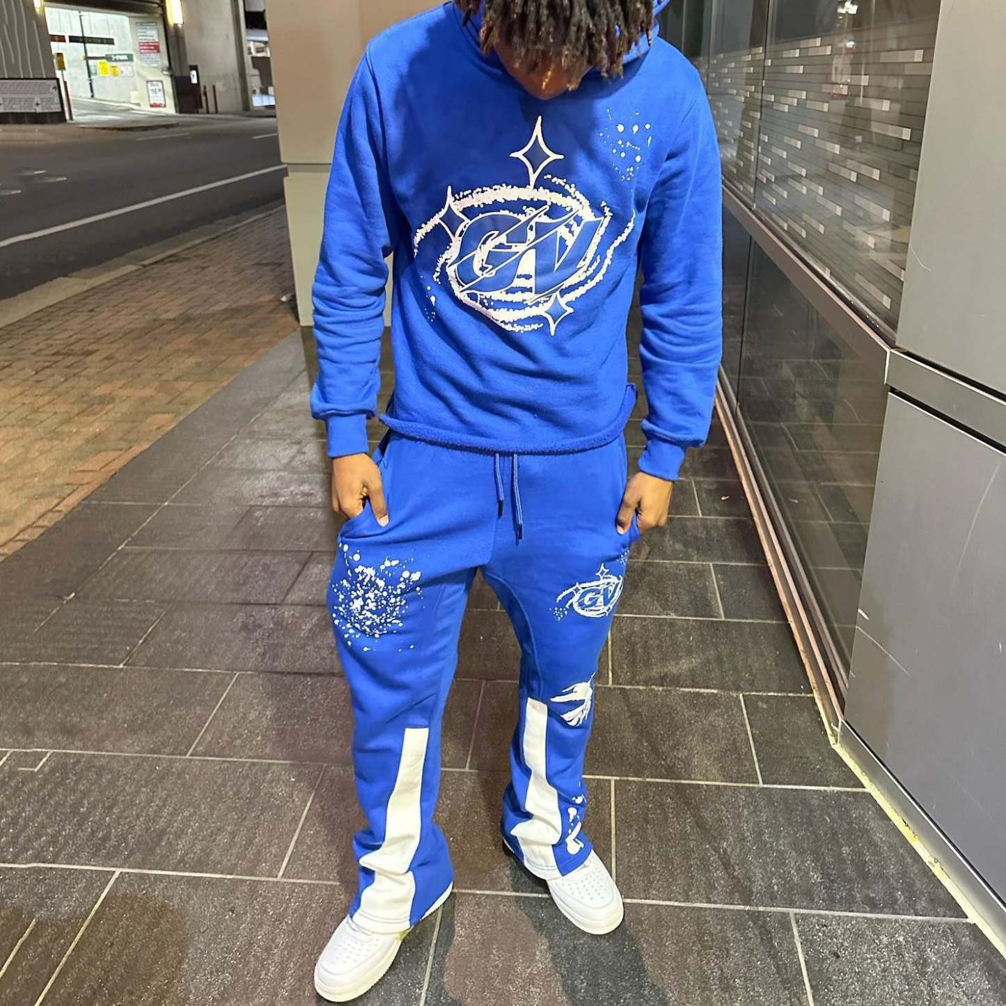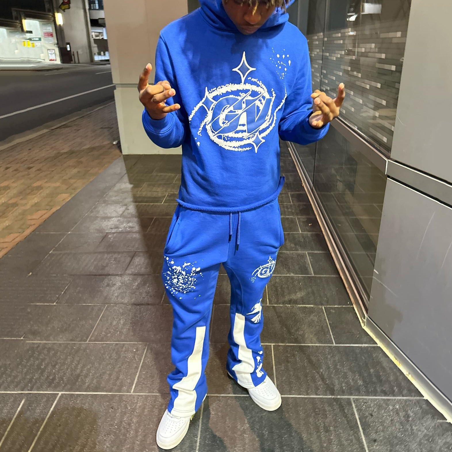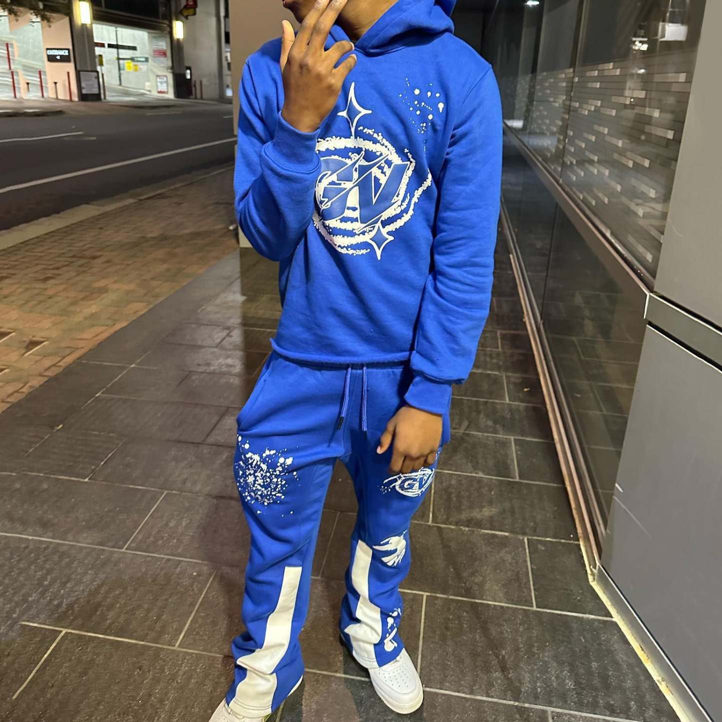 Casual Print Hoodie Sweatpants Two Piece Set