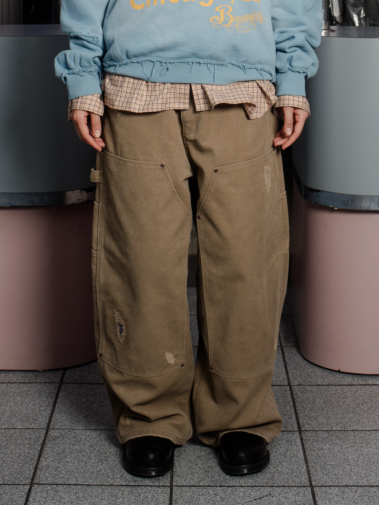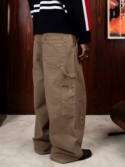 DISTRESSED DOUBLE-KNEE WORKWEAR PANTS