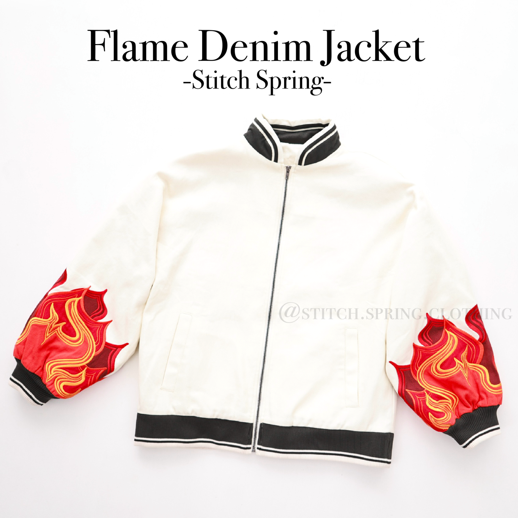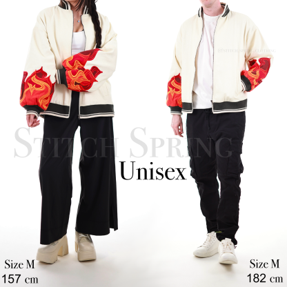 What's truly unique about the embroidery on the back of this jacket is that the flames of this art piece is made from a combination of different denim fabrics. This gives the design more texture and will make you stand out as it is something not many people will have seen before.