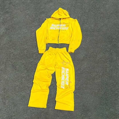 Lettering and Stars Print Gradient Hoodie Two-Piece Set