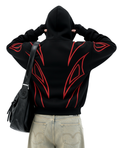 The edgy, structured visual silhouette adds a standout, statement-making touch, while its relaxed fit suits versatile styling — ideal for street-style ensembles, casual outings, or those who favor unique, bold apparel that balances comfort and striking design.