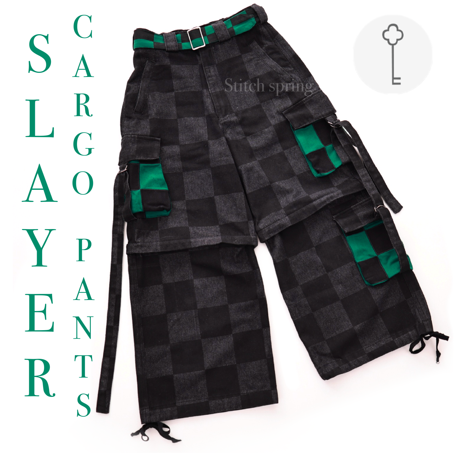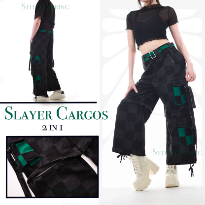 All pieces from the slayer collection feature some of the most unique and detailed embroidery, knit & denim designs we have ever made. The fabric is made from a very high quality denim material. The pockets of these pants feature a unique appliqué pattern that makes them look very luxurious. The pants are also convertible into shorts. So if it ever gets too hot you can take the bottom part of them off. The Zipper also allows you to style them in unique ways. You could for example half zip them and then wear some colorful tights underneath. The embroidery also adds a unique touch to the design and makes it very interesting for casual outfits or subtle cosplays. The embroidery has been specially modified so that it is not itchy on the skin and blends well with the denim fabric. The cargos can be tightened at the bottom so they can match even more styles. The design is supposed to make you comfortable while standing out in a positive way. The pants also have pockets with High End Metal Zippers in the front so that you never have to worry about loosing your phone or wallet how it is usually a common fear with comfortable pants. The elastic in the back also ensures an extra comfortable fit without getting too tight.
