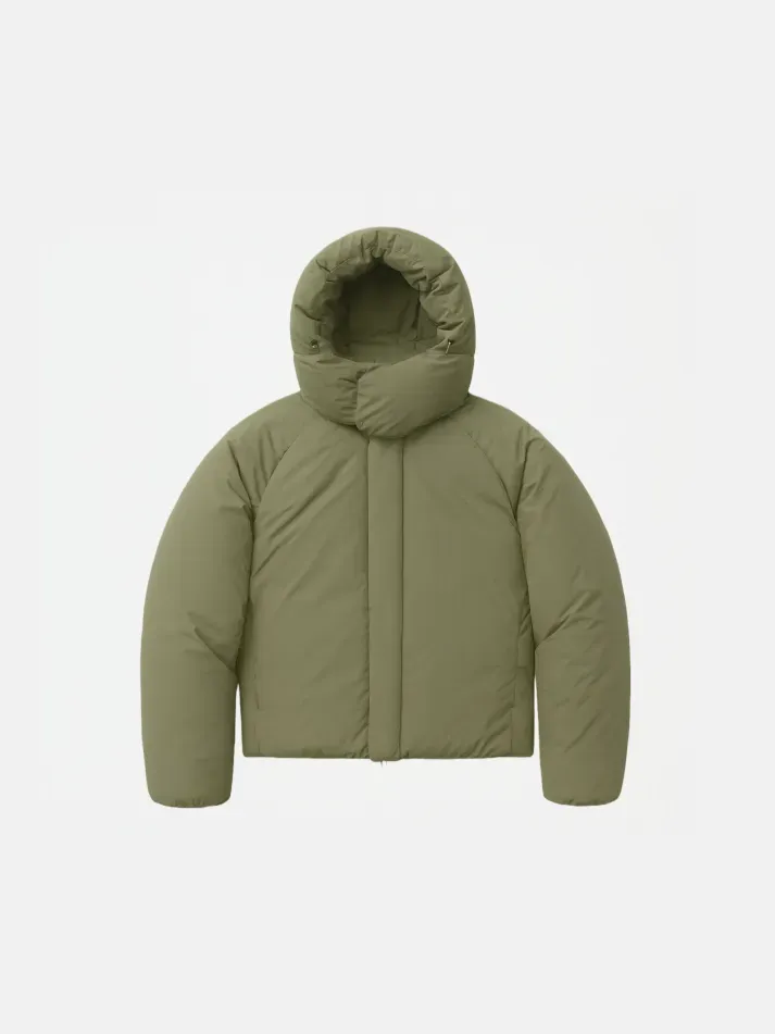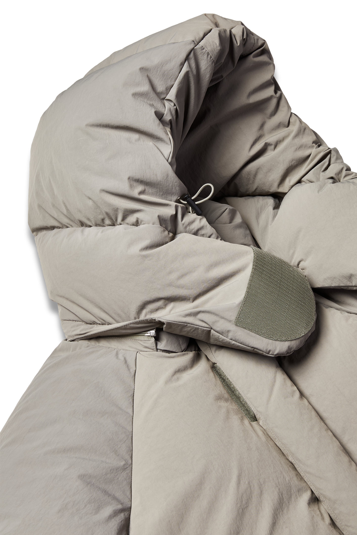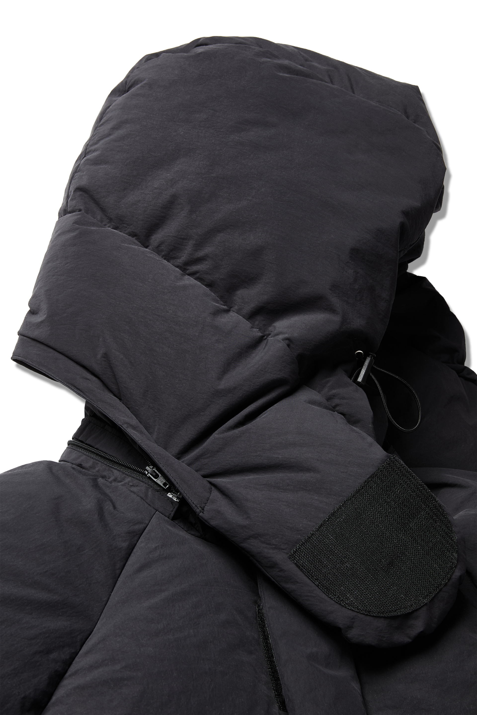 Velcro fastening — on center front and hood for a refined utilitarian touch