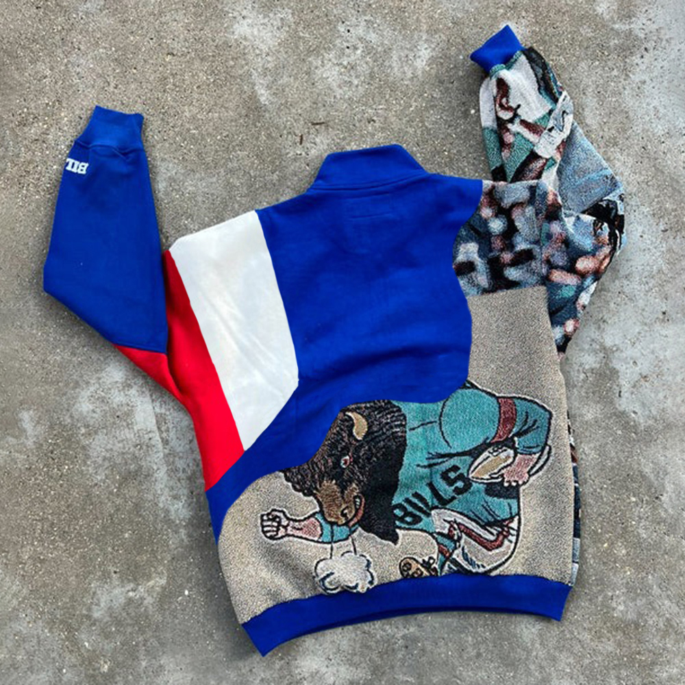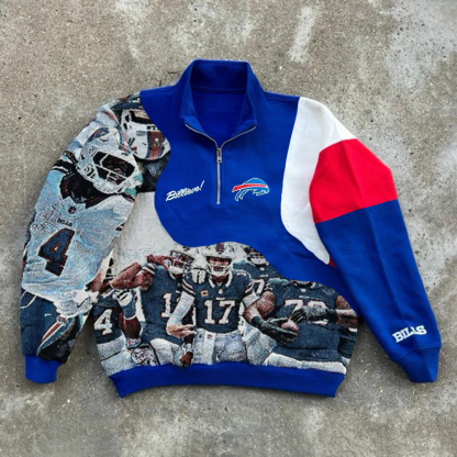 Stylish Bills Print Long Sleeve Half-Zip Sweatshirt
