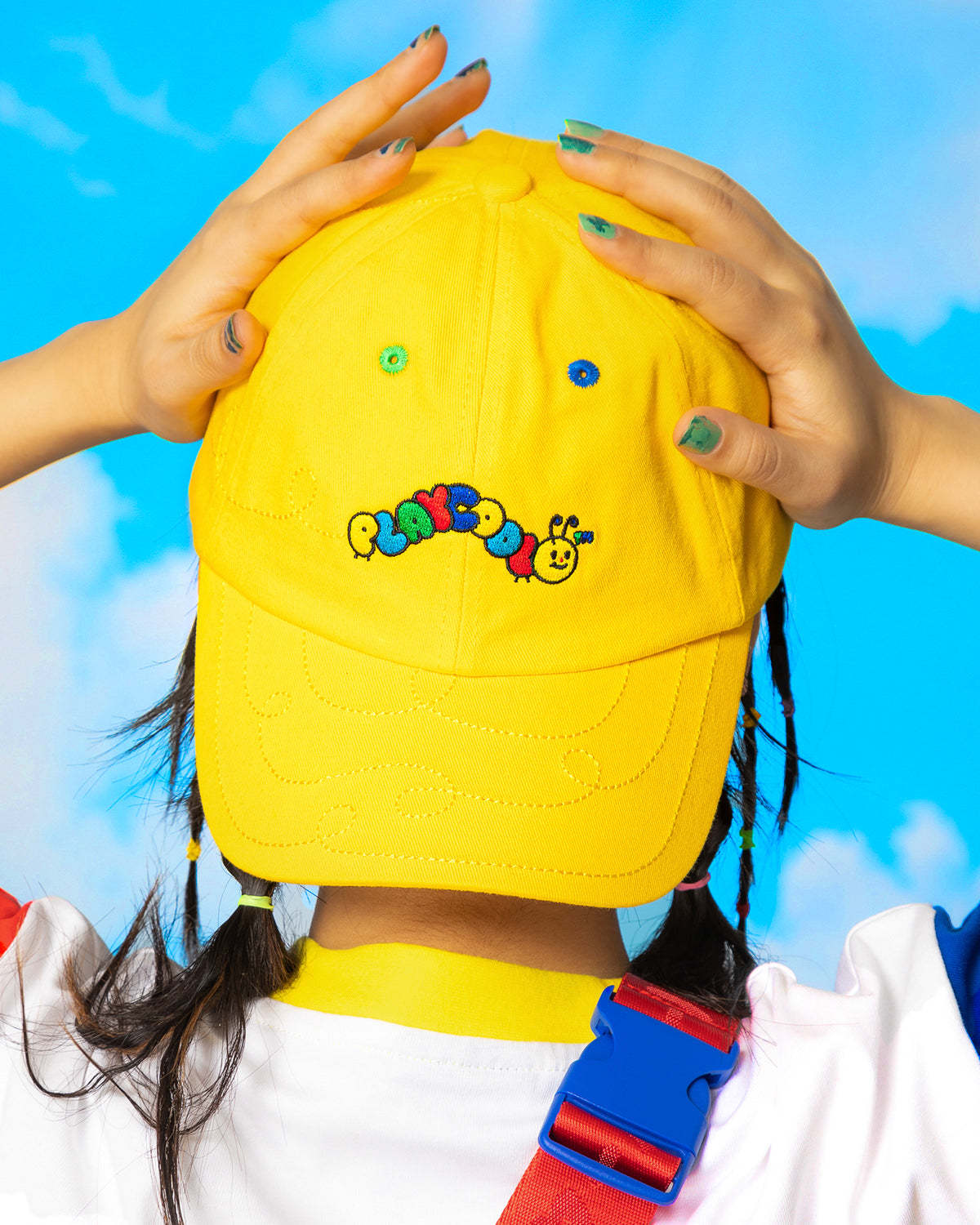 The caterpillar's body reads play cool which is epic