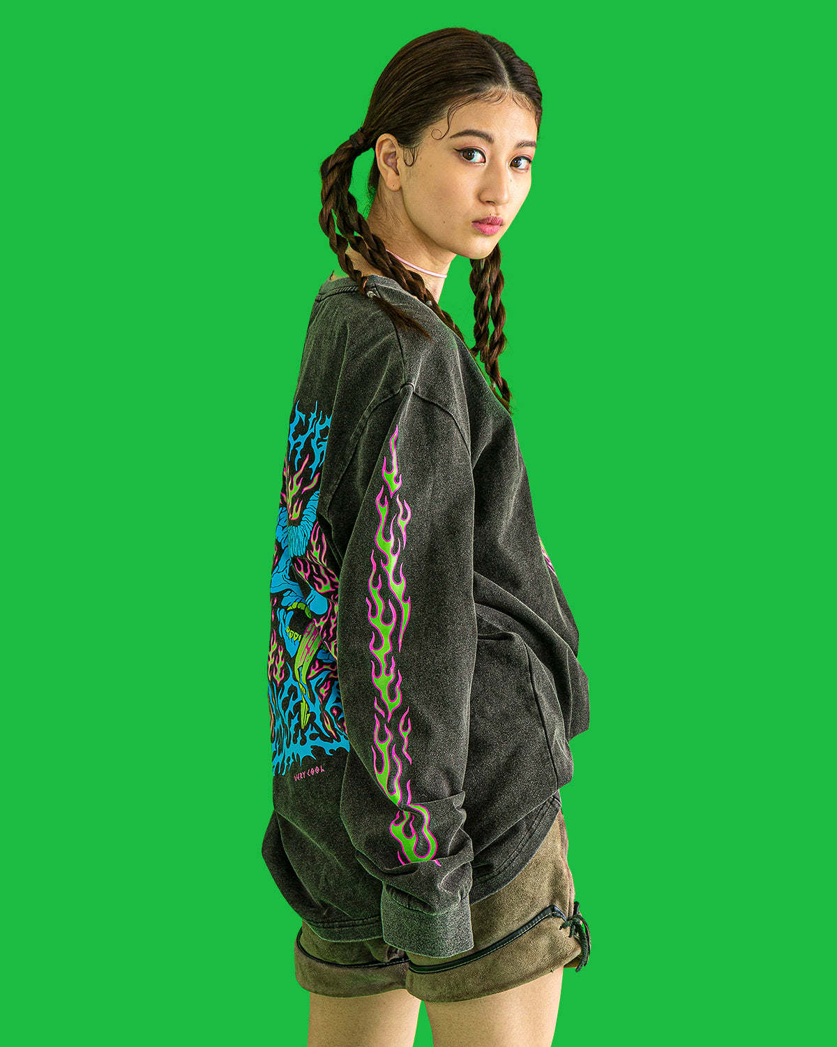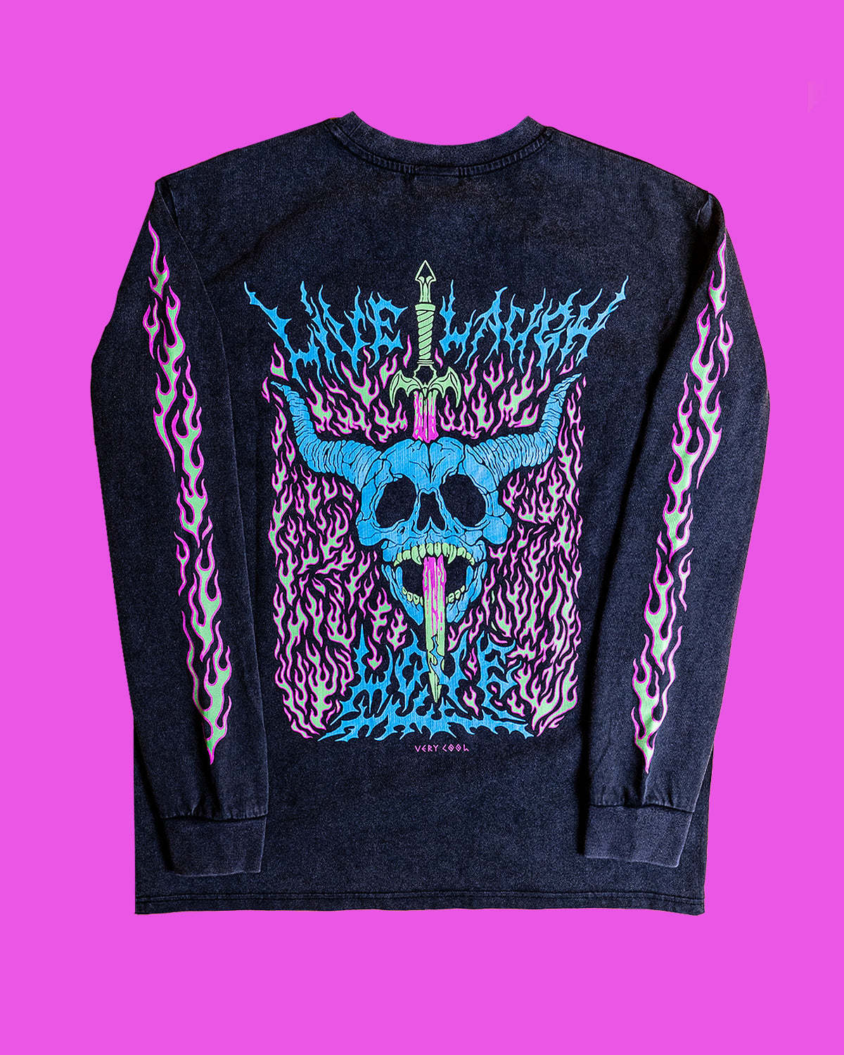 Washed black longsleeve with glow in the dark screen print